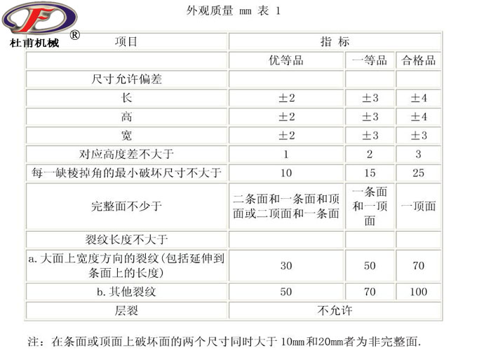 其次,我們來看一下粉煤灰加氣磚設備生產線所生產出的加氣磚砌塊制品的質量標準: